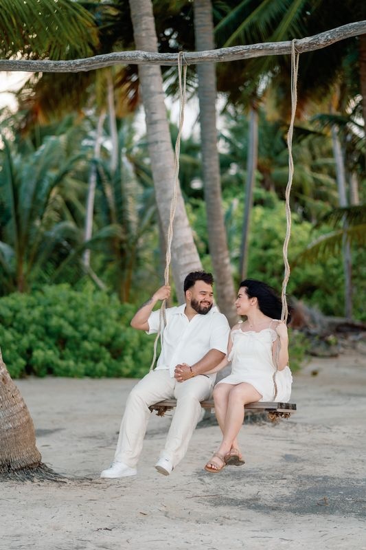 Peu après, Leslie a remarqué un chemin composé de pétales de roses blanches. Ce sentier guidait le couple vers un endroit isolé sous les palmiers. Pendant ce temps, le bruit des vagues apportait une sensation de calme et d’harmonie.