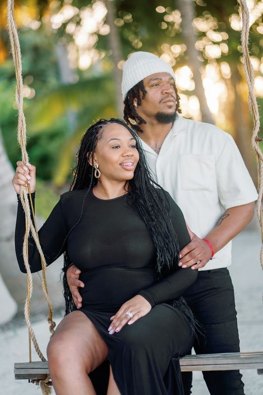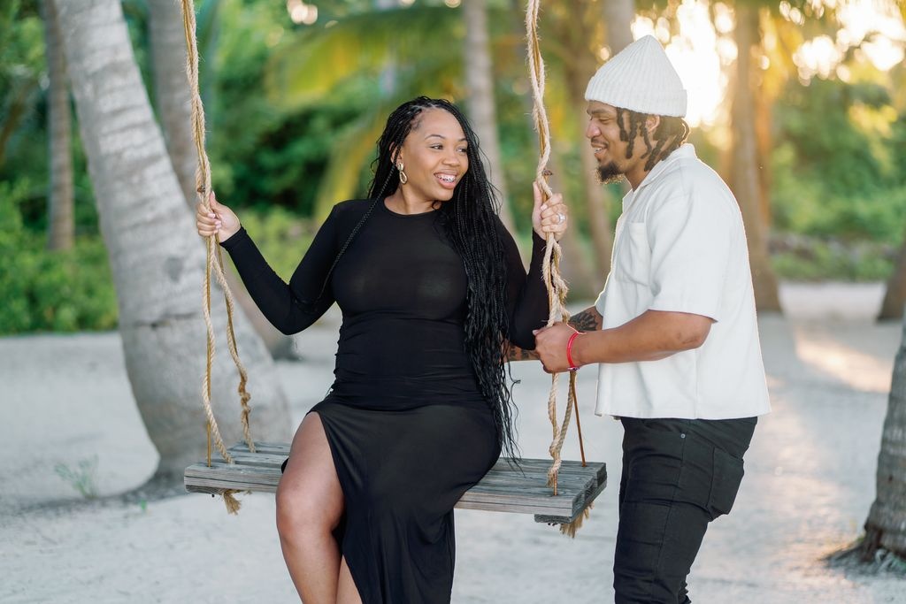 Ensuite, ils font une promenade tranquille le long de la plage. Le sable chaud, la brise tropicale et la lumière de la lune créent le cadre parfait pour une conversation intime sur leur future famille.