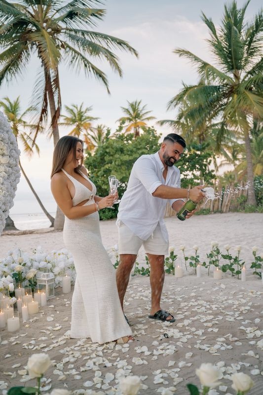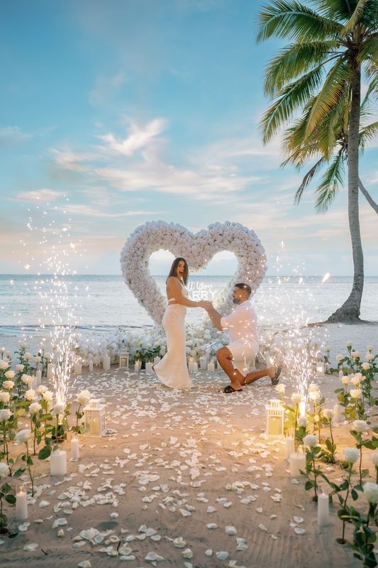 Une demande en mariage à Punta Cana sur une plage privée des Caraïbes au coucher du soleil est la manière parfaite de commencer votre éternité ensemble. Notre équipe de Caribbean Wedding and Events Agency crée des moments magiques remplis de romantisme, de surprise et d’émotions inoubliables.
