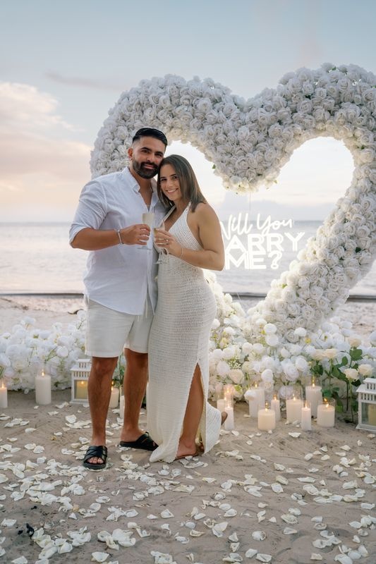 La demande s’acheva par une promenade romantique le long du rivage, où le couple profita de la beauté du coucher de soleil caribéen. Ce fut un véritable moment de conte de fées, créé avec amour et soin pour devenir un souvenir qui durera toute une vie.