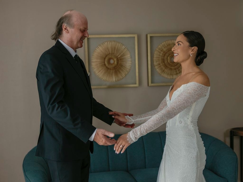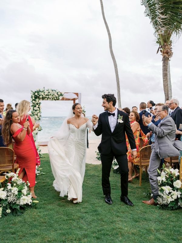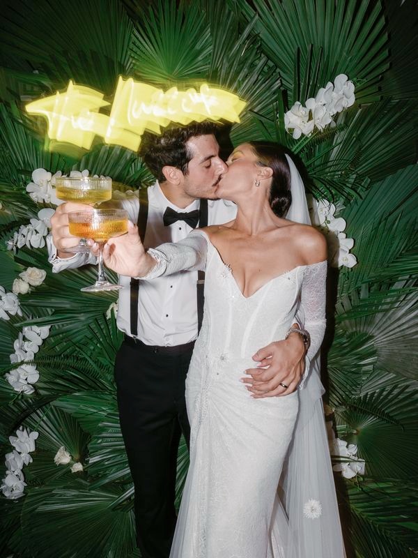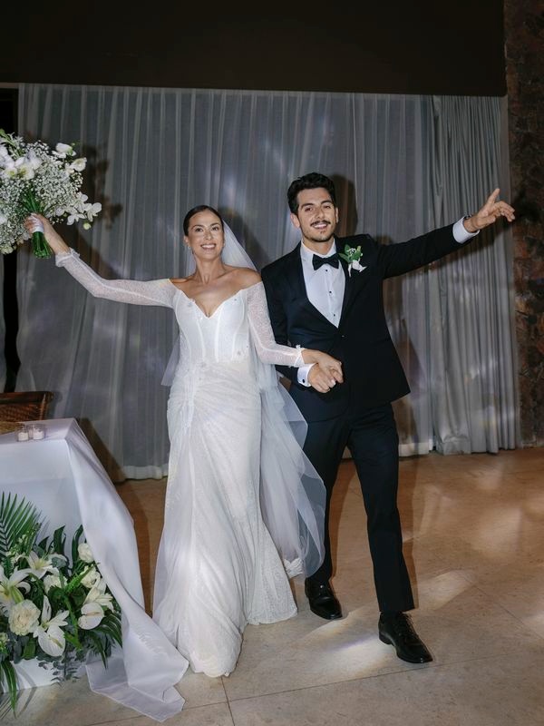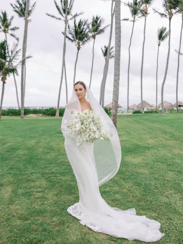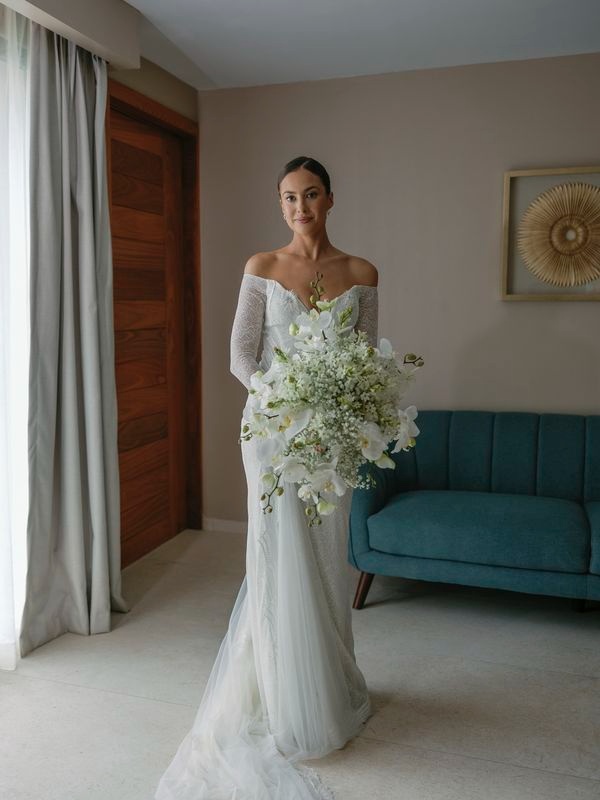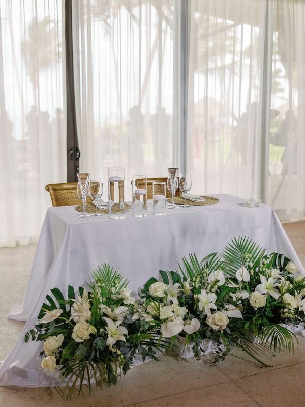 Le couple a échangé ses vœux sur une plage immaculée. En outre, la végétation tropicale éclatante et le bleu cristallin de la mer des Caraïbes ont créé un cadre magique. De plus, une brise légère faisait bouger les palmiers tandis que Connie et Peter se tenaient sous une magnifique arche florale décorée de fleurs blanches. Ainsi, le contraste entre le vert du feuillage, la blancheur des pétales et l’horizon bleu a donné une scène digne d’un conte de fées. Les invités, les pieds dans le sable doux, ont vécu une cérémonie pleine d’émotion et de tendresse.