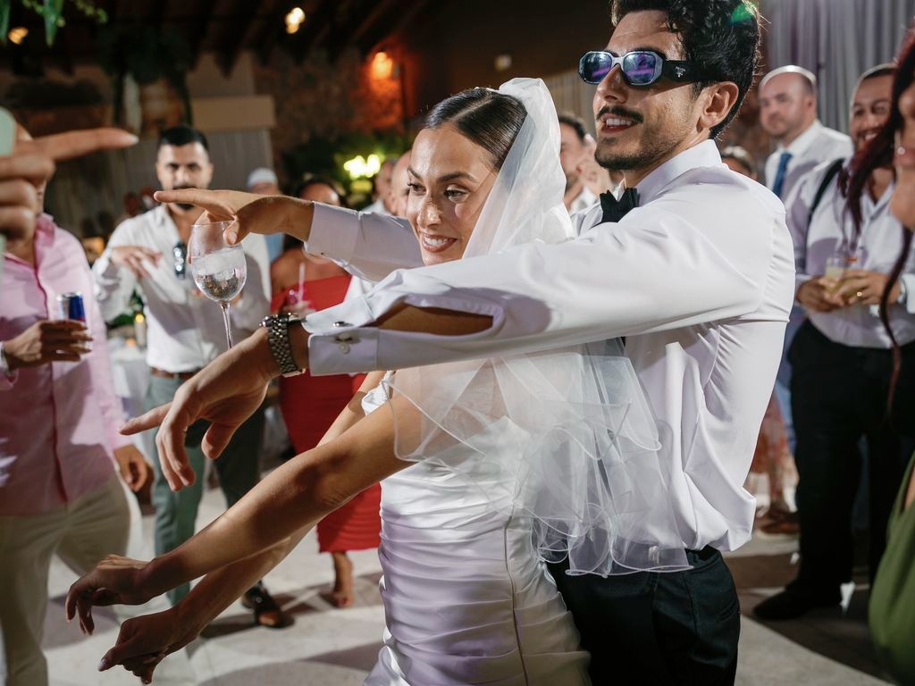 Tout au long de la soirée, les invités ont profité d’une gastronomie savoureuse et de discours émouvants. Ensuite, ils ont partagé de beaux moments de danse. De plus, la première danse du couple a été très intime, entourée de lumières chaleureuses et de sourires. Par ailleurs, les photographes ont capturé chaque détail : le sable fin, les sourires spontanés et la magie du coucher du soleil caribéen. En conséquence, la galerie finale raconte l’histoire complète de cette journée pleine de joie et d’émotion.