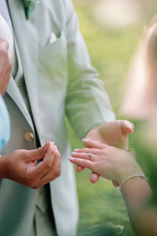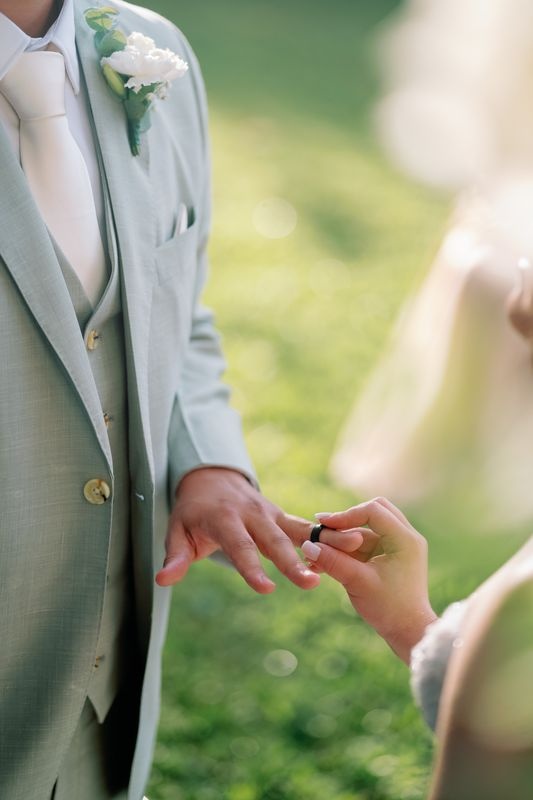La cérémonie s’est déroulée dans le jardin, entourée de verdure et d’air frais de montagne. Cette mise en scène en plein air a créé une ambiance romantique et émouvante, permettant aux invités de profiter pleinement du moment et du décor naturel.