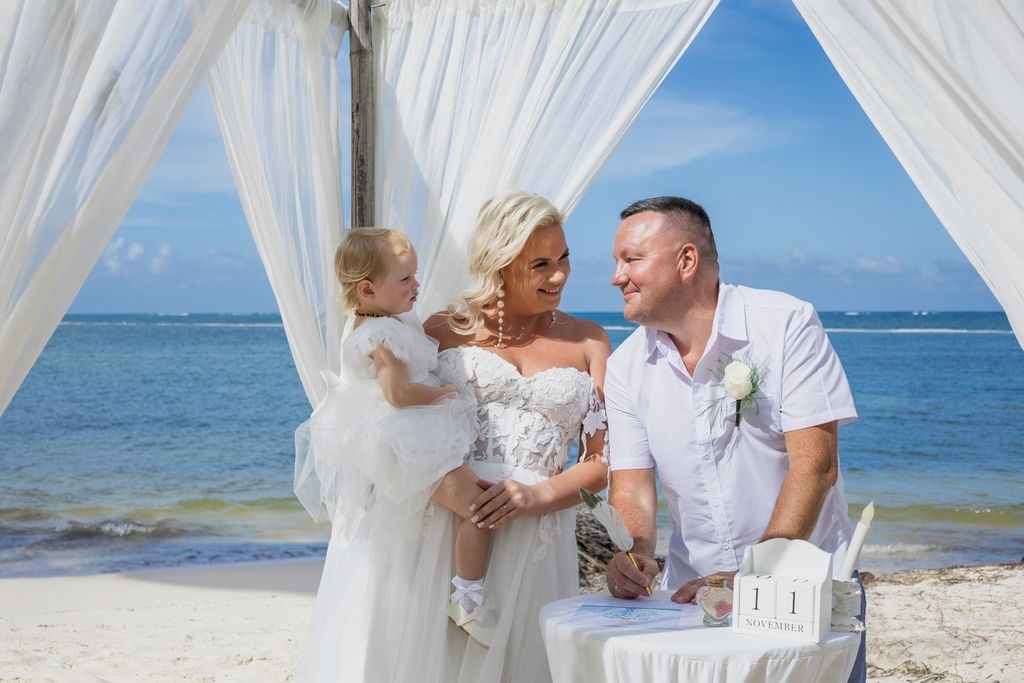 Mariage sur la plage à Punta Cana avec leur petite fille